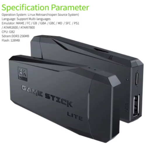4K Game Stick za povratak neprocenjivih sećanja! Nostalgija i zabava: Sa preko 20,000 opcija, ovaj game stick vam omogućava da se ponovo uživate u klasičnim igrama iz 80ih i 90ih godina. Oživite zlatno doba gejminga i delite zabavu sa prijateljima i porodicom! Zabavite se sa prijateljima i porodicom: Dobijate 2 bežična kontrolera, omogućavajući retro igranje sa vašim najmilijima. Uživajte u igrama iz udobnosti svog kauča. HD izlaz: Podržava 4K ultra visoku definiciju za TV, monitore i projektore sa HDMI ulazom. Uživate u živopisnim i zanimljivim video igrama na velikom ekranu za udobnije gejming iskustvo. Jednostavna upotreba: Povežite game stick direktno na HDMI port vašeg TVa za jednostavno korišćenje. Može se povezati sa računarom, TVom, monitorom, projektorom i drugim uređajima.Kako se koristi:1. Povezivanje: Uključite game stick u HDMI port vašeg TVa.2. Izbor ulaza: Postavite TV na odgovarajući HDMI ulaz.3. Uživanje: Opustite se i uživajte u više od 20,000+ retro igara!Napomene:1. Nemojte formatirati SD karticu (64GB), igre se nalaze na kartici.2. Kada primite proizvod, SD kartica je već instalirana u slotu.3. Spisak igara možete videti skeniranjem koda u uputstvu.4. Većina igara će raditi normalno, ali neke igre mogu "bagovati" zbog inkompatibilnosti, što je normalno.5. Kada se kontroler ne koristi, zaštita će se automatski aktivirati da uštedi energiju. Svetlo će biti isključeno u tom trenutku. Samo ponovo prebacite prekidač sa OFF na ON da ponovo upalite svetlo.6. QR kod za video uputstvo nalazi se na kraju uputstva, skenirajte kod i pogledajte video.7. Kontroler se napaja samo sa 2 AAA baterije (nisu uključene). Ne može se puniti.