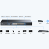 Verzija modela: GS1024L 1.0Interfejsi Fizička dugmad: VLAN/Default/Ektend DIP prekidačGigabitni RJ45 portovi: 24Portovi proširenog režima: #1~#22VLAN režim Portovi: #1~#22LED: Power; Brzina/Link/ACT svakog Ethernet portaUlaz za napajanje: AC UlazPerformanse Brzina bakra i rastojanje Cat. 3 ili veći kabl: 100 metara pri 10 MbpsCat. Kabl od 5 ili više: 100 metara pri 100 MbpsCat. 5e ili viši kabl: 100 metara na GigabituCat. 5e ili viši kabl: 250 metara pri 10 MbpsNapomena o brzini bakra i udaljenosti: Prenos od 250 metara je dostupan samo na portovima proširenog režima.Tabela MAC adresa: 8192Maksimalni kapacitet prebacivanja: 48 GbpsMaksimalna brzina prosleđivanja: 35,712 MppsJumbo okvir: 15 KBBafer paketa: 4 MbitPower Basic Power Saving: TačnoPower Methods ACAC: 90~260V 50/60HzMaksimalna potrošnja energije 11WPotrošnja energije u stanju mirovanja 6,8WSwitching802.3 protokola: -802.3k kontrola protoka-802.3i 10BASE-T-802.3u 100BASE-T-802.3ab 1000BASE-T802.1 protokoli: 802.1p: LAN nivo 2 QoS/CoSL2 karakteristike: -IGMP Snooping-Prevencija petlje-Loop Detection-DSCP QoS-802.1p QoSPouzdanostMetode uzemljenja pouzdanosti: Utikač sa tri zupca, Tačka uzemljenjaZaštita od munje/prenapona RJ45: 4KV; AC: CM 4KV/DM 2KVESD kontaktna zaštita: 6KVESD zaštita vazduha: 8KVRadna temperatura okoline: 0 C ~ 40 C (32 F ~ 104 F)Temperatura skladištenja: -40 C ~ 70 C (-40 F ~ 158 F)Radna vlažnost: 10% ~ 90% bez kondenzacijeVlažnost skladištenja: 5% ~ 90% bez kondenzacijeDimenzije: 440×180×44 mm; 17,32×7,09×1,73 inčaTežina proizvoda: EU/SAD: 1671 g (58,94 oz.); EU: 1650 g (58,2 oz.)Materijal kućišta: MetalInstalacija: Desktop, Montaža na rack preko nosačaSadržaj paketa GS1024LPower CordUputstvo za instalacijuMontažni komplet