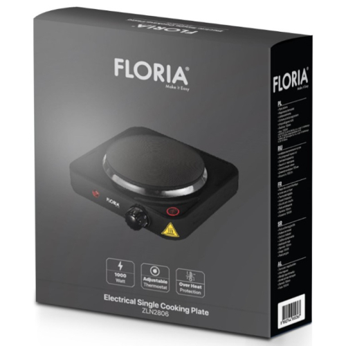 Električna ringla Floria od livenog gvožđa prečnika 150mm, metalno kucište, podesivi termostat, gumene stopice, zaštitu od pregrevanja, snage 1000W, izvor napajanja 220-240V.Standardni tip montažeVrsta napajanja: MrežaStandardni tip ploče za kuvanjeSnaga: 1 kWTip kontrolne table: MehaničkiPozicioniranje prednje kontrolne tableEnergetska efikasnost klase: AMaterijal: MetalFunkcije Kontrola temperatureBoja: CrnaBroj zona za kuvanje 1Veličina:Visina 22 cmŠirina 21 cmDubina 5 cmDužina kabla 1 mTežina 1,3 kg