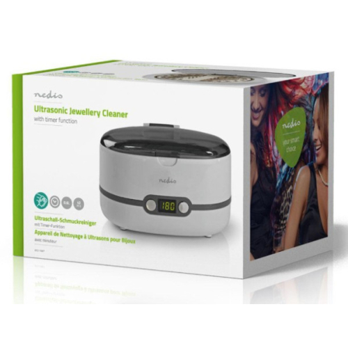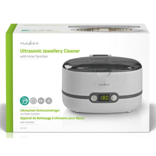 -Vibrira na 43kHz što obezbeđuje pažljivo čišcenje-Digitalni tajmer za podešavanje vremena od 1,5 do 8 minuta-Jednostavan za upotrebuOčistite svoj nakit ovim ultrazvučnim čistačem. Zvučni talasi vibriraju na 43 kHz, što osigurava da se sva prašina i prljavština pažljivo očiste. Jednostavno stavite svoj nakit u rezervoar od 600 ml i pokrenite uređaj. Čak i oni teški uglovi bice savršeno čisti. Digitalni tajmer vam omogucava da podesite vreme čišcenja od 1,5 do 8 minuta. Providni poklopac vam omogucava da vidite kako se vaš nakit čisti. Neka vaši dragoceni ukrasi, nakit, pa čak i naočare budu sjajni i novi!Širina: 200 mmVisina: 123 mmDubina: 130 mmTežina: 731 gBoja: BelaMaterijal PlastikaUlazni napon: 230 V AC 50 HzUtikač za napajanje: Euro / Tip-C (CEE 7/16)Broj proizvoda u pakovanju: 1 kom
