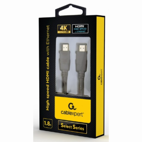 HDMI kabl velike brzine sa Ethernetom, "Select Series", 1,8 mHigh Speed HDMIPodržava 4K UHD rezolucijuEthernet kanal-HDMI kabl velike brzine sa Ethernetom-Podržava 4K UHD rezolucije na 60 Hz-Pozlac´eni konektori za savršen kvalitet slike-Kompatibilan sa svim uređajima koji podržavaju HDMITip: HDMI velike brzine sa EthernetomPodržane HDMI verzije: HDMI 2.0 (i sve prethodne verzije)Konektor 1: HDMI tip-A muški, ravan, pozlacenKonektor 2: HDMI tip-A muški, ravan, pozlac´enMaterijal provodnika: CCAMaksimalni propusni opseg: 18 GbpsMaksimalna podržana rezolucija: 4K @ 60HzPodržane funkcije: CEC, HEC, HARC, HDR, EDID, 3D21:9 bioskopski odnos širine i visine: podržanoICbCr 4:2:2/4:4:4/4:2:0: podržanoDuboka boja: podržano (do 16 bita po kanalu)Audio podrška: PCM, DTS-HD Master i Dolbi Digital True HD Surround Sound kompatibilanPodrška za audio kanale: 32 kanalaHDCP podrška: verzija 1.4 / 2.2Pletenje jakne: n.a.Spoljni prečnik jakne: 6 mmStil konektora: oblikovanDužina: 1,8 m