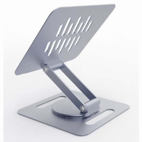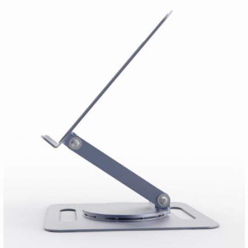Ergonomski dizajn sa podesivom visinom za optimalan ugao gledanjaKompaktan dizajn, ali pogodan za notebook računare do 15,6"Može se sklopiti potpuno ravno radi lakšeg skladištenja i transporta-Sklopivo rotirajuce metalno postolje za prenosni računar sa podešavanjem visine-Rotacija od 360 stepeni i podesiva visina omogucavaju postavljanje ekrana za optimalan ugao gledanja-Ležište za notebook sa otvorenom strukturom nudi dobru ventilaciju i povecanu cirkulaciju vazduha za notebook računare-Sigurnosna ivica i silikonski jastučici čuvaju notebook bezbednim i stabilnim-Praktičan mehanizam za sklapanje omogucava uštedu prostora za skladištenje ili transportMaterijal: čelik, silikonska podlogaPovršinska obrada: Praškasti premazBoja: svemirsko sivaPodrška: 11" - 15,6" notebookKapacitet težine: 10 kgNeto težina: 0,64 kgDimenzije: 237x212x355mm
