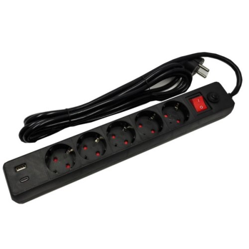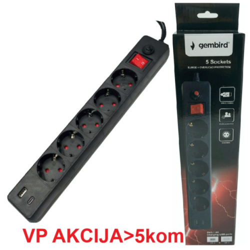 5 utičnih mesta + USB-A i TYPE-C punjač 5V/3100mAH za brzo punjenjeSURGE + OVERLOAD protection.Štetni prenaponi, uzrokovani munjama ili greškama u instalacijama, mogu putovati kroz strujnu ili računarsku mrežu pritom oštećujući Vaše elektronske uređaje i važne podatke. Cak i manji svakodnevni, udari mogu degradirati performanse i skratiti radni vek elektronske opreme, Gembird SPG linija prenaponske zaštite predstavlja najbolji izbor za navedene probleme koje pogađaju skoro svaki office ili domaćinstvo, uz 5 utičnica.SPG5 Power Cube surge protector 5 sockets 6ft black colorSurge protector with Basic protectionProtects computers and other office / home equipment from harmful power surges and spikes5 AC sockets German type + USB-A, USB-C , Fast ChargeAutomatic circuit breaker 16A, trip-free mechanism, combined with the power rocker switch with bulbBasic surge protection built-inMaximum surge voltage 4500V, maximum spike current 4500A, 1350JoulesPRODUZNI KABL SA ZASTITOM SURGE PROTEKTOR ups mustek apc-------------------------------------------------------------------------------------Produžni kabl sa 5 utičnih mesta, prekidačem iprenaponskom zaštitom SP5 + CHILD PROTECTION sa USB konektorima na sebi USB-A i TYPE-CTip kabla H05VV-F /3x1.5mm2 , MAX 3500/230V / 16A-Dužina kabla: 3mElektrični porodužni kabl sa 5 utičnih mesta, prenaponskom zaštitom,svetlećim prekidačem.Dobar izbor za zaštitu svih elektronskih uređaja, posebno TV aparata,računara i računarskih komponenti osetljivih na pojavu prenaponausled udara groma ili kvarova u niskonaponskoj mreži koji moguuzrokovati značajna oštećenja.Napomena:Pre upotrebe pročitati važno uputstvo za korišćenje koje se nalazi napakovanju proizvoda.Proizvod poseduje Potvrdu Usaglašenosti u skladu sa Pravilnikomo električnoj opremi namenjenoj za upotrebu u okviru određenihgranica napona izdate od Instituta Vinča.^^