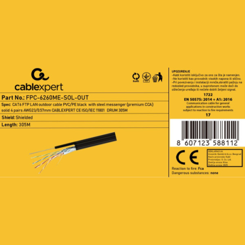 FPC-6260ME-SOL-OUT GEMBIRD FTP CAT6 OUTDOOR, SOLID 23AWG, 0,57MM PREMIUM CCA KOTUR PUN PRESEK 305M
