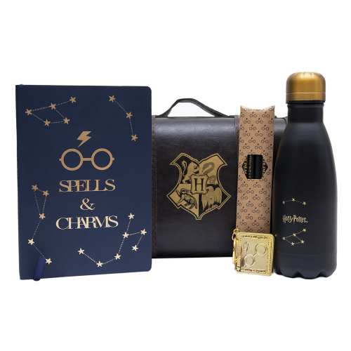 Harry Potter kovčeg koji sadrži svesku a5 formata, flašicu kapaciteta 500 ml, 4 olovke, privezak i kaiš za nošenje kovčega (odvaja se).