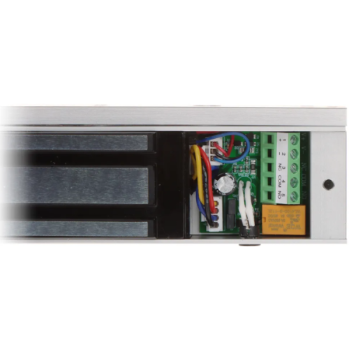 Karakteristike- Sila držanja 280kg- Alu. konstrukcija- LED indikator- Sa izlazom za stanje vrata- Napajanje 12Vdc/510mA, ?6.1 W- Radna temperatura –20 °C~+55 °C- Dimenzije 250 mm × 48.6 mm × 26 mm- Masa 2.1kg