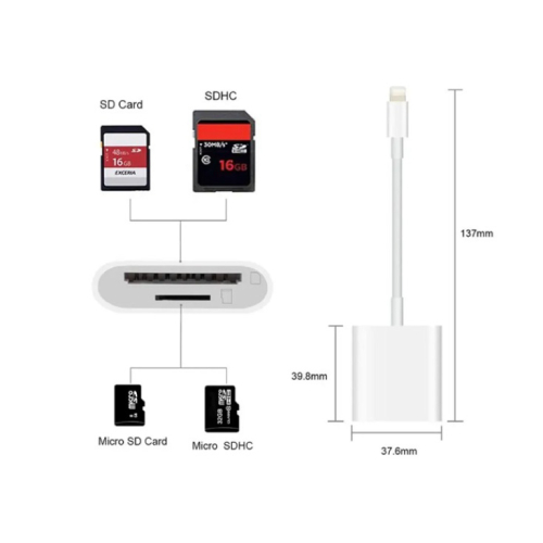 Ovaj adapter omogućava jednostavan prenos podataka sa SD i Micro SD kartica direktno na vaš iPhone ili iPad