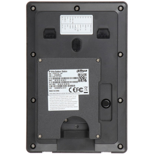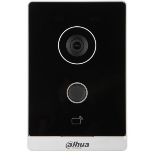 SIP video interfonska pozivna jedinica, WiFi, sa citacem. 1/2.8” 2MP CMOS. Vidni ugao 125° horizontalno. 3DNR, WDR 120dB. 1 pozivni taster (mehanicki). Mifare citac dometa 3-5cm i kapaciteta do 10.000 kartica. H.264 / G.711Mu, G.711u, PCM kompresija. Video bit rate 256K do 4M, Audio 16KHz, 16Bit. Protokoli: SIP, P2P, IPv4, DNS, RTSP, RTP, TCP, UDP, Onvif. Nazidna montaža. RS485 port, rele za el. bravu, alarmni ulaz/izlaz, ulaz za REX, ulaz za detekciju stanja vrata. RJ45 10M/100M mrežni port. Tamper. IEEE802.11b /802.11g /802.11n WiFi 2.4GHz. Opseg radne temperature -30°C do +60°C. IP65 stepen zaštite (ako je primenjen silikonski zaptivac). Dimenzije 150mm ×100mm ×24.8mm. Masa 490g. Potrebno napajanje 12VDC ili PoE, do 7W. CE/FCC/UL.