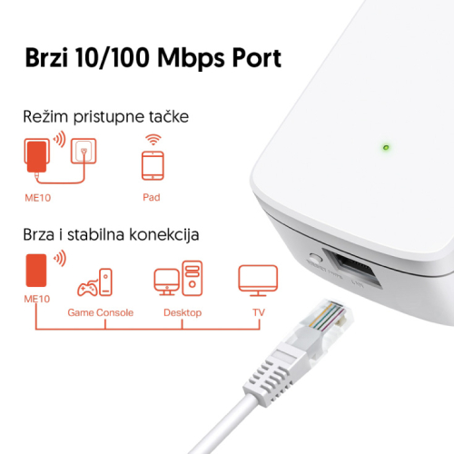 Takođe, sa brzim 10/100 Mbps portom, omogućava žičanu konekciju za računare, IPTV uređaje i gaming konzole