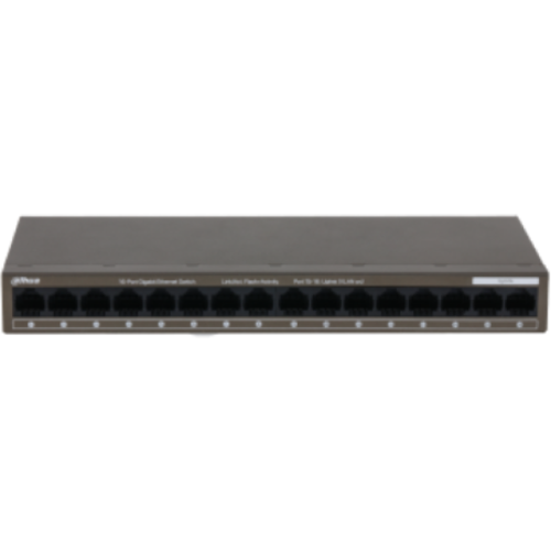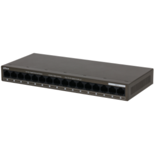 - 16x 10/100/1000 Base-T- Layer 2- Switching Capacity 32G- Packet Forwarding Rate 23.8Mpps- Packet buffer 2 Mbit- Jumbo frame 10K Bytes- MAC table size 8K- komunikacioni standardi IEEE 802.3- IEEE 802.3u- IEEE 802.3x- IEEE 802.3ab- Dimenzije 235 mm × 103 mm × 27 mm- Masa 1.36kg- Napajanje 12VDc- Zaštite od elektrostatičkog pražnjenja: 8kV vazduh, kontaktno 6kV- Zaštita od udara groma, Common mode 2kV, Differential mode 1 kV- Metalno kućište- Opseg radne temperature –10 °C to +55 °CSpecifikacije- Ime: PFS3016-16GT-M- Kategorija: Pristupni Svičevi- Brend: Dahua- Broj portova: 16- Broj PoE portova: 0- Broj optičkih portova: 0- PoE: Ne- ePoE: Ne- PoE budžet: /- Full gigabitni: Da- Upravljivost: Neupravljivi- Izrada: Standardni- Montaža: Desktop ili na zid- Kućište: Metal- Layer: L2