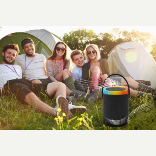 Strimujte svoju muziku bežičnoKompaktan prenosivi dizajn sa RGB LED svetlomSavršeno za vaš mobilni telefon ili tablet-Prenosivi BT zvučnik za zabavu sa RGB LED svetlosnim efektom-Strimujte svoju muziku bežično, domet signala do 10 m-Integrisani mikrofon za handsfree telefonske pozive-Višebojni RGB LED svetlosni efekat sa 5 režima boja-Takođe reprodukuje muziku direktno sa mikro SD kartice, USB stick-a (max. 32 GB), FM radija ili preko AUX ulaza-Dugo trajanje baterije - do 5 sati striminga muzike sa jednim punjenjemInterfejs: BT v.5.3BT frekvencijski opseg: 2,402 GHz – 2,480 GHzSnaga RF prenosa: < 9 dBmZvučnici: 3 Ohma, prečnik 66 mmRMS izlazna snaga: 10WFrekvencijski odziv: 85Hz - 20KHzUlazna osetljivost: -90dbmSNR: 95dBPodržane funkcije: BT/FM/TF/USB/handsfriPodrška za MicroSD kartice: do 32 GBUSB-AF port: podrška za fleš disk do 32 GBDC ulaz: USB Tipe-C, 5,0 V/1,0 A (max. 5,0W)Baterija: punjiva 1800 mAh Li baterijaVreme punjenja: 3-4 sataDimenzije: 111x111x160mmNeto težina: 0,93 kgSistemski zahteviBT audio izvor (računar, pametni telefon, tablet)