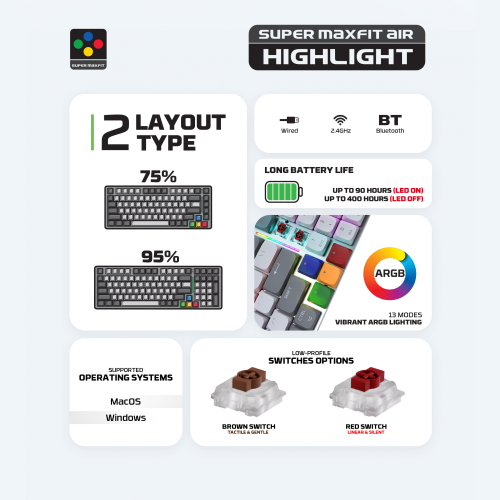 TASTATURA MEHANICKA GAMING FANTECH MK915 RGB MAXFIT AIR83 WIRELESS GREY (RED SWITCH)