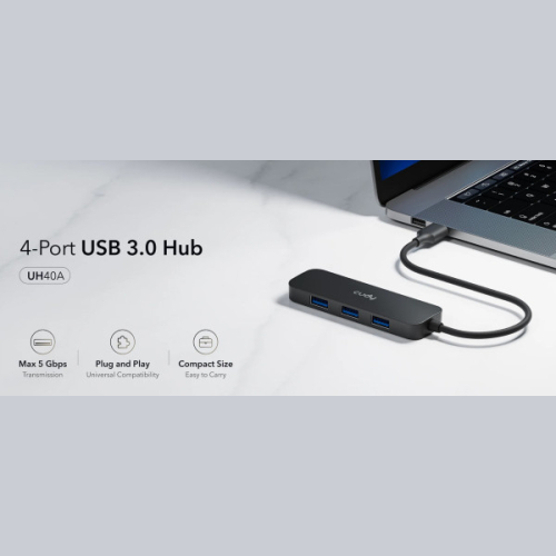 Plug-and-Play USB 3.0 / 3.2 Gen 1. Brzina zadnje ploče je 5 Gbps.-1× uzvodni USB-A muški (5 Gbps)-4× USB-A 3.2 Gen 1 (5 Gbps)-Univerzalna kompatibilnost-34 g (1,2 oz.)Verzija modela UH40A 1.0Interfejsi:-Upstream veza 1× USB-A 3.2 Gen 1 muški konektor (5 Gbps)-USB portovi 4× USB-A 3.2 Gen 1 portovi (5 Gbps)Maksimalna potrošnja energije (W) U zavisnosti od povezanih uređajaCrna BojaKucište ABSZahtevi:Zahtevi za hardver Zahteva USB-A 3.2 Gen 1 na glavnom uređaju za punu brzinuKompatibilan OS:WindowsmacOSUbuntu ili druga Linuk izdanjaInstalacija drajvera: FreeOkruženje:Radna temperatura: 0~40 °C (-32~104 °F)Temperatura skladištenja: -20~70 °C (-10~158 °F)Radna vlažnost: 20~85% RH bez kondenzacijeVlažnost skladištenja: 10~90% RH bez kondenzacijeTežina mehaničkog proizvoda 34 g (1,2 oz.)Glavni deo dimenzija: 96×31×11 mm3,78×1,22×0,43 inčaKabl: 167 mm