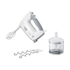 Ručni mikser Bosch MFQ36450S ima snagu 450 W, 5 radnih brzina + turbo stepen rada. Soft Touch ručica sa ergonomskim dizajnom omogućava da bude lak za rukovanje. Od opreme sadrži: 2 turbo metlice za mešanje, 2 metlice za gnečenje i univerzalnu seckalicu sa posudom.
