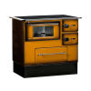 Šporet u braon boji sa ložištem koje je obloženo šamotnim pločama, koje akumuliraju toplotu i povećavaju temperaturu sagorevanja.