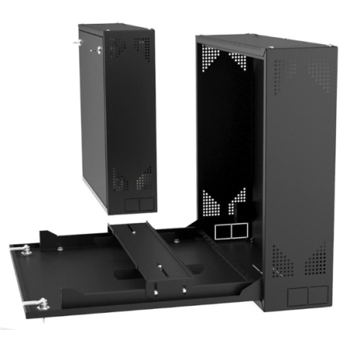 Metalni rek orman za video nadzor CRNI. Kvalitetan metalni-rek orman za smeštaj DVR-a, monitora, napajanja i mrezne opreme. Korisna dubina za smestaj uredjaja iznosi 140mm. Ovaj model se moze montirati na zid. Ovaj model je CRNE boje i plastificiran je. Vrata se mogu otvoriti pod uglom od 90 stepeni a na vratima se nalazi klizni drzac koji moze da prihvati XVR bilo kog prizvodjaca visine 1U. Otvori za ventilaciju se nalaze sa svih strana a cirkulacija vazduha je prirodna. Sa gornje strane postoje otvori za dva ventilatora velicine 80*80mm koji se kupuju zasebno. Radi lakse manipulacije i transporta, Rek orman se prodaje sastavljen i u kutiji. Monitor, DVR i napojna letva se kupuju zasebno i ne dolaze u kompletu.Boja: Crna ral 9005Materijal stranica: Celicni lim debljine 1.2mmMaterijal vrata: Plastificirani limMontaza: Na zidMaksimalna veličina monitora: 24 incaBravica sa ključem: Da na prednjim vratima × 2Otvori za kablove: Sa strane i odozgoVentilacija: Mesto za dva ventilatora 80 × 80 mmDimenzije (DxSxV): 560 mm × 540 mm × 150 mm