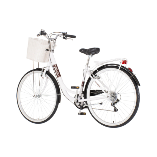 Prelepo dizajnirano, udobno, sedište koje se uklapa u sveukupni estetski utisak ovog Fashion Bike. Odlično usklađene boje vas motivišu na vožnju! Garnitura V-brake kočnica omogućava kontrolisano kočenje, a lagana i precizna Shimano oprema brzo i tačno menjanje brzina. Gume Cst daju doprinos sigurnosti i preciznom upravljanju tokom vožnje i kočenja, a napravljene su od izuzetno durabilnih i kvalitetnih materijala. Na ovom biciklu je lako menjati brzine, sa obzirom da je za preciznost zadužena respektabilna Shimano oprema. Bicikl poseduje svu neophodnu opremu, od koje se izdvaja pletena prednja korpa koja je sastavni deo dizajna, ali koju je moguće i vrlo lako skinuti. Ovaj bicikl je opremljen sa čeličnim ramom, metalnim, dizajniranim, blatobranima i ostalom opremom za gradski bicikl.