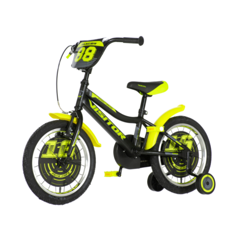 Pomoćni točkići imaju za cilj da pripreme dete za vožnju na dva točka, ovaj bicikl ide i korak dalje, pa uključuje i ručnu kočnicu, kako bi naučili dete da pravilno zaustavi bicikl. Kvalitetan dečiji bicikl koji je lepo sastavljen, od impresivnih materijala, sa orijentacijom na detalje i jarkih boja koje deca vole. Prelep, nisko postavljeni ram je pun kolorita i grafike. Za udobnu vožnju, ergonomsko sedlo koje u potpunosti prati kolorit bicikla. Kontra sistem kočenja sa zadnjom pedalom, omogućava laku kontrolu kočenja deteta.