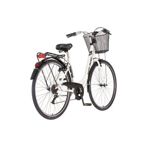 Za kontrolu i jačinu kočenja zaslužne su V-brake kočnice a za brzinu i preciznost menjanja brzina tu je Shimano oprema kao garancija. Ovaj bicikl poseduje i sve neophodne dodatke, kao što su prednja i zadnja rasveta, zvono, predivna korpa, paktereger i blatobrane, kao i prelepo dizajniran, a u skladu sa biciklom, štitnik zadnjeg točka. Tako da je ovaj bicikl odmah spreman za vožnju, čim ga dobijete u ruke. Ovaj bicikl je opremljen sa čeličnim ramom, metalnim, dizajniranim, blatobranima i ostalom opremom za gradski bicikl. Fantastična kombinacija boja za vaš gradski bicikl i urbanu vožnju!