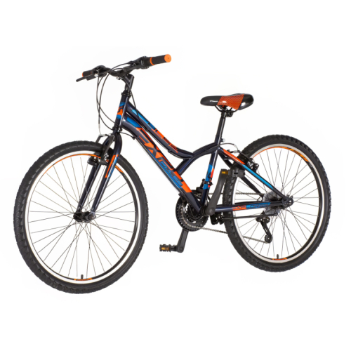 Za sigurnost vožnje je zadužena garnitura V-brake od legure aluminijuma koja je tako dizajnirana da pruža odličnu snagu zaustavljanja i dug vek trajanja. Anatomski dizajnirano sedište odiše modernim linijama, idealnim za brdski bicikl. Brdski bicikl za juniore se može pohvaliti modernim dizajnom i odličnim spojem boja koji garantuju da će vaš tinejdžer biti primećen na stazi. Izdržljiv čelični ram, interesantnog dizajna i aktuelnih boja.