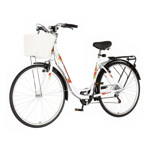 Dugotrajni čelični ram krasi ovaj gradski bicikl. City Bike, za sve one koji vole vožnju u urbanom okruženju i uređenim stazama. Sedlo je komforno i udobno, visok uspravan položaj sedenja omogućava i bolju preglednost u saobraćaju. Od prateće opreme podrazumeva: LED rasveta, blatobrani, paktreger pozadi i korpa napred za odlaganje stvari.