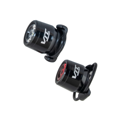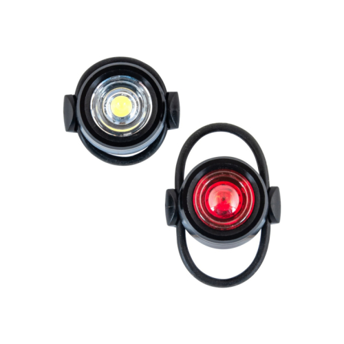 Set aluminijumskih LED svetala za bicikl. Osvetljenje je kompaktnog dizajna te je pogodno za nošenje i montiranje, a daje dovoljno svetlosti da se vidi u saobraćaju. Funkcije seta: treperenje (240h), stabilno (120h), isključeno.
