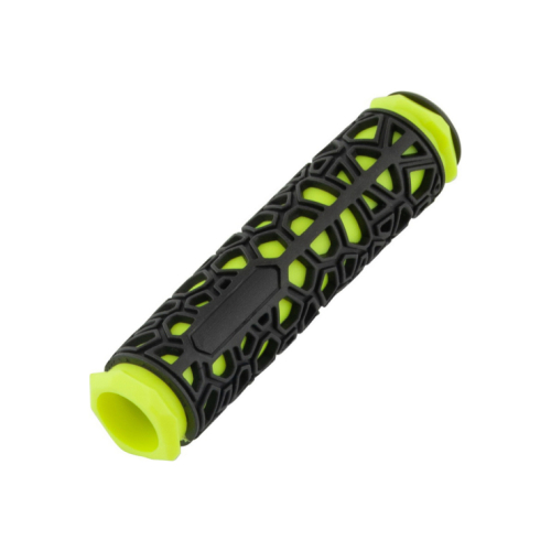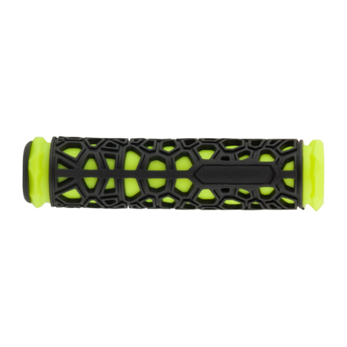 Ručke volana Spider u crno-žutoj neon boji (130 mm) dizajnirane su za bicikliste koji žele atraktivan izgled i vrhunsku funkcionalnost. Izrađene od visokokvalitetne kombinacije gume i plastike, nude odličnu otpornost na habanje i vremenske uslove. Zahvaljujući jedinstvenom "pauk" dizajnu sa mrežastom strukturom, omogućavaju bolju ventilaciju i smanjenje znojenja dlanova, što ih čini idealnim za duže vožnje. Ergonomski oblik pruža udoban i siguran hvat, dok neon žuti detalji poboljšavaju vidljivost i dodaju sportski izgled vašem biciklu. Laka montaža omogućava brzo postavljanje na većinu bicikala.