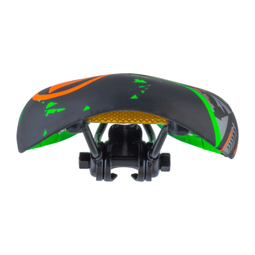 Sedište 3701083 za dečiji Mtb sa interesantnim i aktuelnim printom, na šine i katadiopterom pozadi, što doprinosi bezbednosti.
