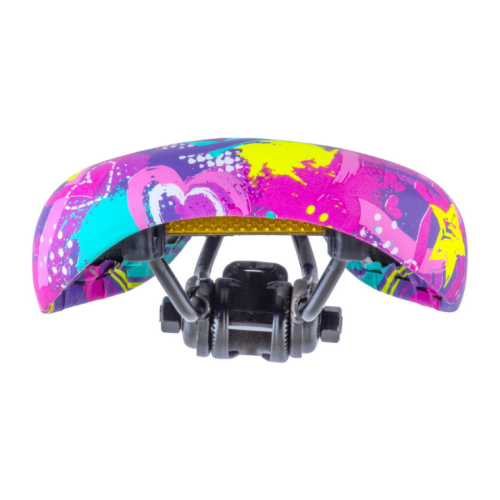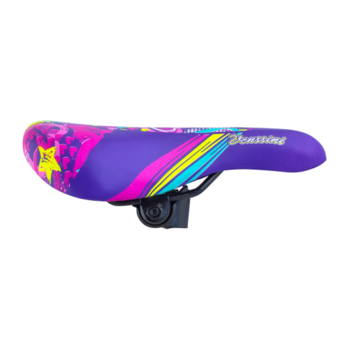 Sedište 3701133 za dečiji Mtb sa interesantnim i aktuelnim printom, na šine i katadiopterom pozadi, što doprinosi bezbednosti.