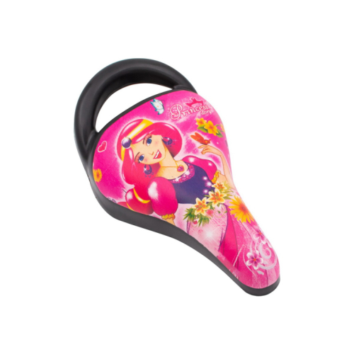 Sedište 3701115 za dečiji bicikl sa ručkom pozadi i interesantnim i aktuelnim printom. Vrlo praktično sedište za decu, pogotovo u prvim koracima na biciklu.