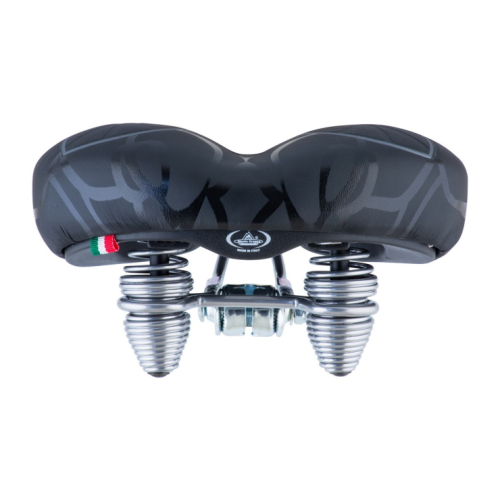 Kvalitetno sedište 3702052 za bicikl, vrhunskog dizajna, urađeno od veštačke kože, sa inovativnim printom i duplim čeličnim oprugama. Sedlo Holly City je komforno, ergonomsko sedište za bicikl, zahvaljujući fleksibilnom poliuretanskom punjenju, koje doprinosi udobnosti tokom vožnje jer utiče na ravnomernu raspodelu težine na sedištu.
