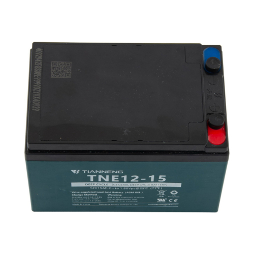 Napon baterije je 12V, kapacitet 15 amper časova. Tip baterije je AGM GEL tehnologije, olovna i namenjena je elektro biciklama. Tianneng je brend, poznate, istoimene, vodeće kompanije u svetu u oblasti nove energije, koja pruža pouzdana rešenja za baterije za sve vrste električnih vozila. Ove baterije odlikuje: snažna pokretačka moć, dug domet, visok kvalitet i prepoznatljivost širom sveta. Dimenzija baterije je 151x98x98mm, a njena težina je 3,95kg.