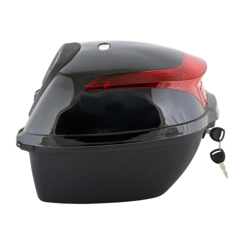Plastični kofer sa bravicom i crvenim katadiopterom, u crnoj boji. Kofer je namenjen modelu elektro bicikla Veneco Spark, kompatibilan je i sa drugim modelima. U setu se nalaze nosač, kao i svi potrebni šarafi za montiranje.