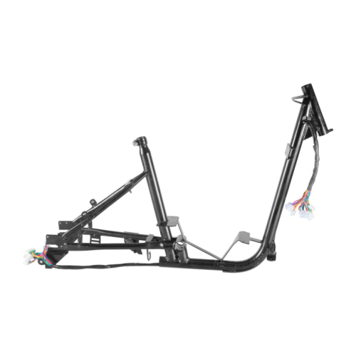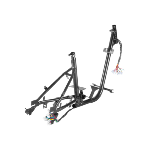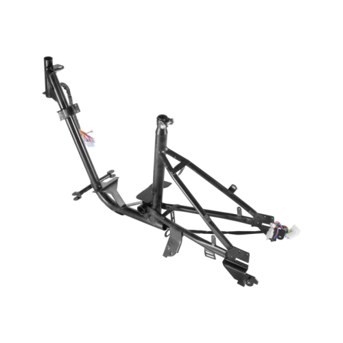 Crni čelični ram za električni bicikl, dizajniran za stabilnost i izdržljivost. Opremljen kablovima za laku integraciju električnih komponenti. Idealan za pouzdanu i sigurnu vožnju. Ram je za model električnog bicikla Veneco Master 4 i Ultra AMP.