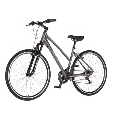 Ovaj ženski bicikl je dizajniran za sve puteve i sve vremenske prilike. To je idealan bicikl za vožnju tokom cele godine! Praktično je dizajniran kao gradski bicikl, ali sa izdržljivošću bicikla namenjenog za duge staze. Izrađen je sa prelepo dizajniranim, aluminijumskim ramom 18, amortizer vilama i vrhunski izdržljivim točkovima 28. Odiše pouzdanošću, udobnošću i sigurnošću. Bicikl poseduje zupčanik Shimano sa 6 brzina, Shimano zadnji i prednji menjač, kao i ručice menjača i odiše pozdanošću. Za udobnost, pored amortizer vila, tu su i ergonomsko sedište kao i neklizajuće ručice volana i pedale sa katadiopterima. Sigurnost je obezbeđena sa V-brake kočnicama za preciznu kontrolu kočenja i rasvetom.