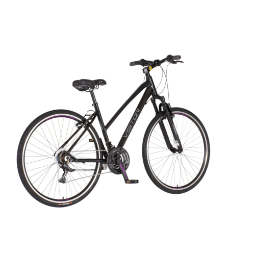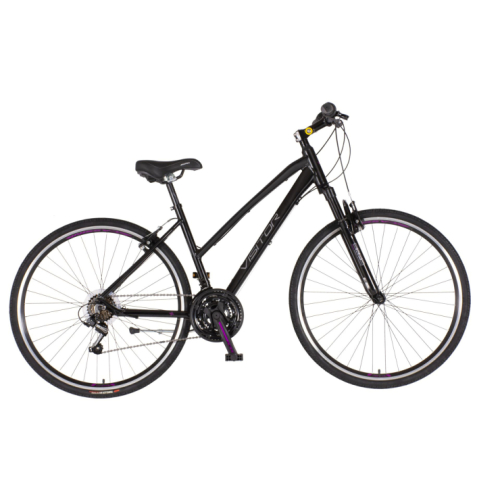 Odličan ženski bicikl, ukoliko tražite svestranost i lep dizajn. Aluminijumski ram je dopunjen sa amortizer vilama koje pružaju bolju udobnost i apsorpciju prilikom vožnje van asfalta. Ovaj bicikl poseduje Shimano zupčanik sa 6 brzina, zadnji i prednji menjač, kao i ručice menjača za precizno i pouzdano menjanje brzina. Opremljen je V-brake kočionim sistemom i kvalitetnim gumama, otpornim na ubode. Ergonomsko sedište nudi udobnost tokom cele vožnje.