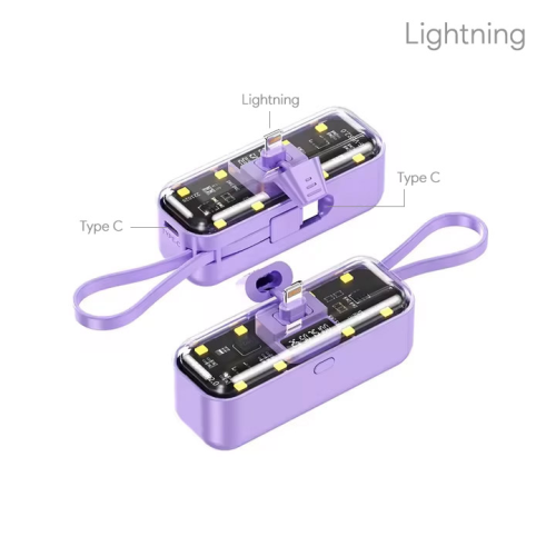 POWER BANK PRENOSIVA BATERIJA PRIVEZAK OXPOWER 5000MAH LIGHTNING LJUBICASTA