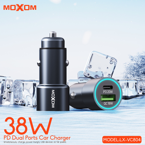 AUTO PUNJAC MOXOM LX-VC804 PD+QC 38W CRNI