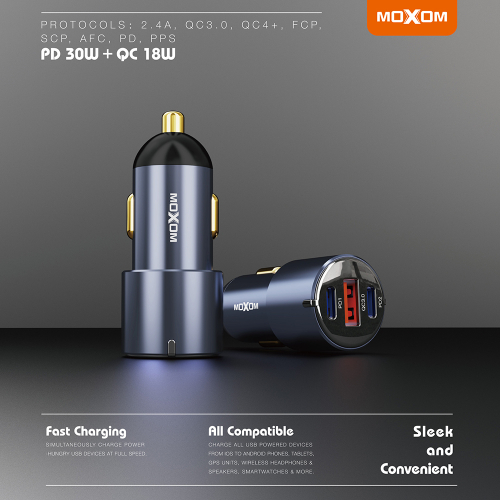AUTO PUNJAC MOXOM MX-VC19 60W 3 PORTS CRNI
