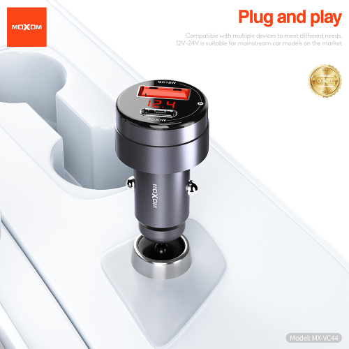 AUTO PUNJAC MOXOM MX-VC44 USB-A 18W+TYPE-C PD30W BEZ KABLA CRNI