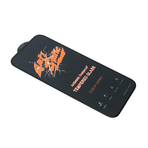 FOLIJA ZA ZASTITU EKRANA GLASS ANTISTATIC ZA IPHONE 15 PRO (6.1) CRNA