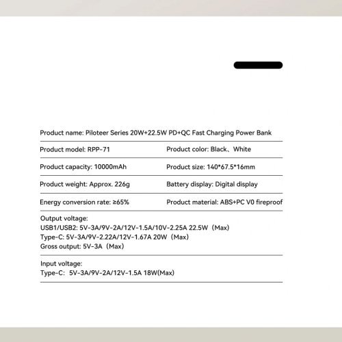 POWER BANK PRENOSIVA BATERIJA REMAX PILOTEER SERIES RPP-71 20W+22.5W FAST CHARGING 10000MAH BELI