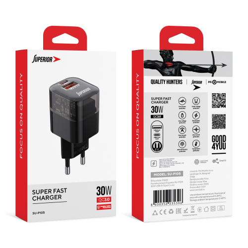 KUCISTE PUNJACA SUPERIOR SU-P105 30W SUPER FAST USB A QC3.0+TYPE C CRNO