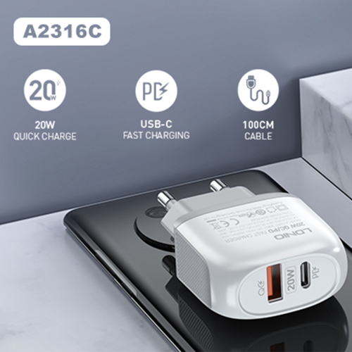 KUCNI PUNJAC LDNIO A2316C QC3.0 18W, PD 20W TYPE-C NA LIGHTNING BELI