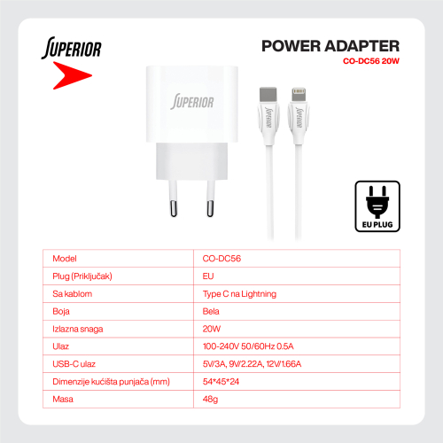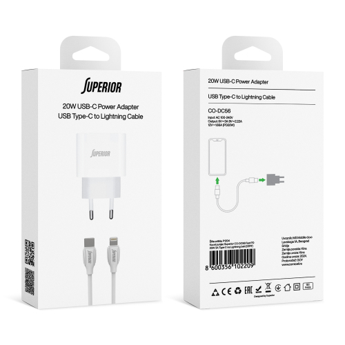 KUCNI PUNJAC SUPERIOR CO-DC56 FAST PD 20W 3A TYPE C NA LIGHTNING BELI (CERT)