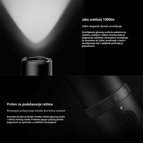 LAMPA XIAOMI MULTIFUNKCIONALNA FLASHLIGHT 1000 LUMEN CRNA FULL ORG (BHR7004GL)