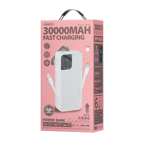POWER BANK RELLAEN SERIES 2.4A CABLED FAST CHARGING RPP-659 30000MAH CRNI