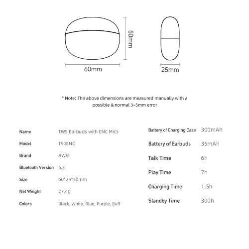 SLUSALICE BLUETOOTH AWEI T90 ENC BELE