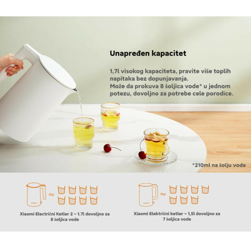 XIAOMI ELEKTRICNI KETLER 2 INOX 1,7L BELI FULL ORG (BHR5927EU)