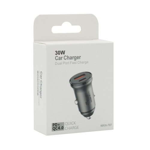AUTO PUNJAC 30W USB-A + TYPE-C ULAZ SA TYPE-C NA TYPE-C KABLOM SIVI